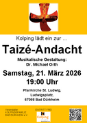 Kolping lädt zur Taizé-Andacht am Samstag, den 21. März, 19 Uhr in der Kirche St. Ludwig, Bad Dürkheim Musikalische Gestaltung: Dr. Michael Orth weiterlesen