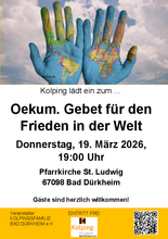 Kolping lädt ein zum Ökumenischen Gebet für den Frieden in der Welt am