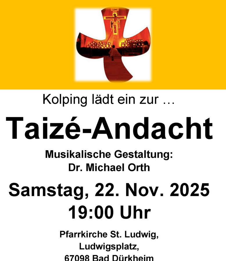 Musikalische Gestaltung: Dr. Michael Orth Wann: Samstag, 22. November 2025, 19.00 Uhr Wo: Pfarrkirche St. Ludwig, Ludwigsplatz, Bad Dürkheim